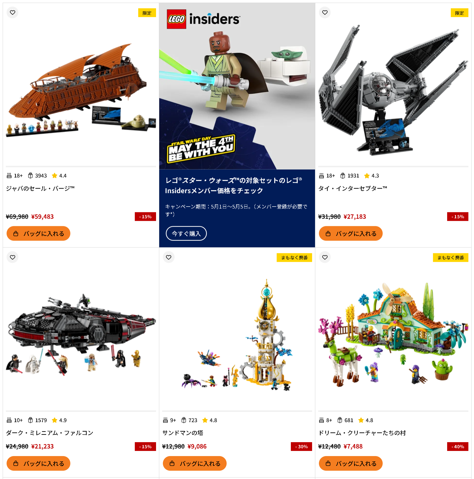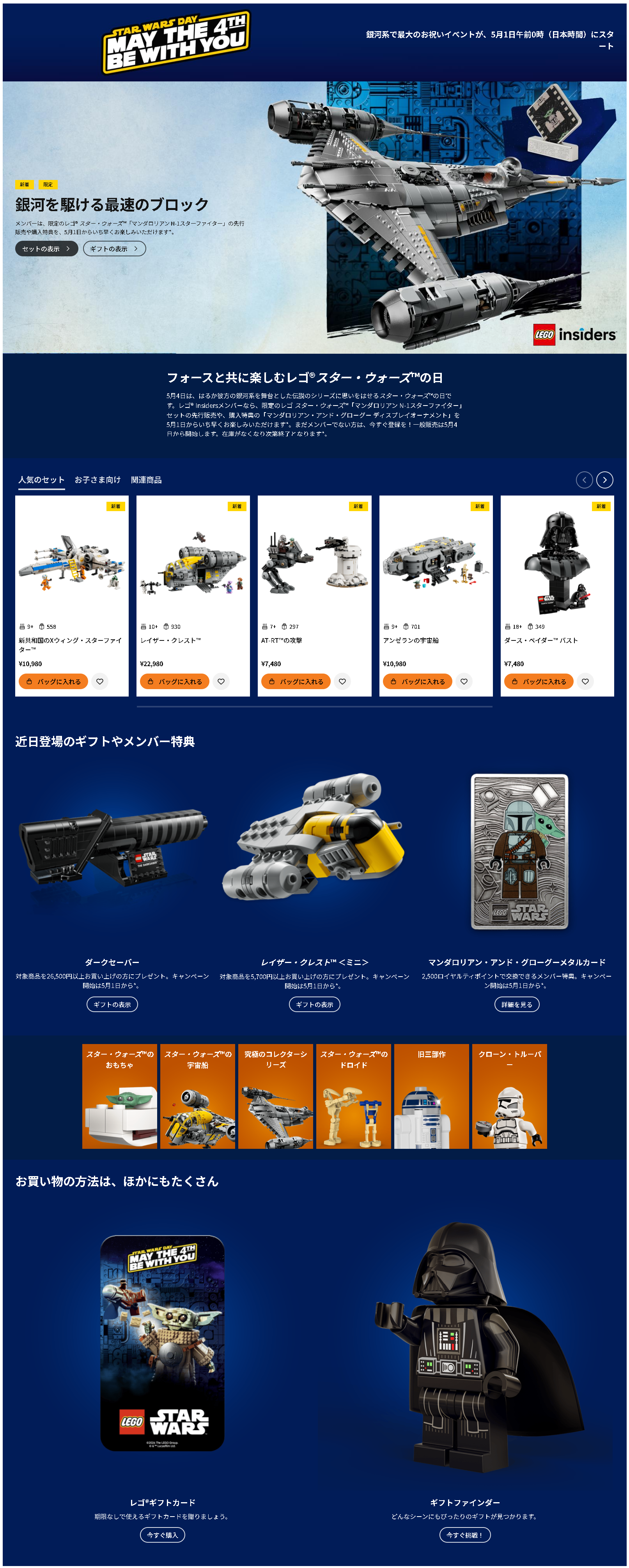 2026/5/1(金)0:00から5/6(水)まで、レゴジャパン公式のレゴショップ公式オンラインストアにて「スター・ウォーズの日」が開催されます。