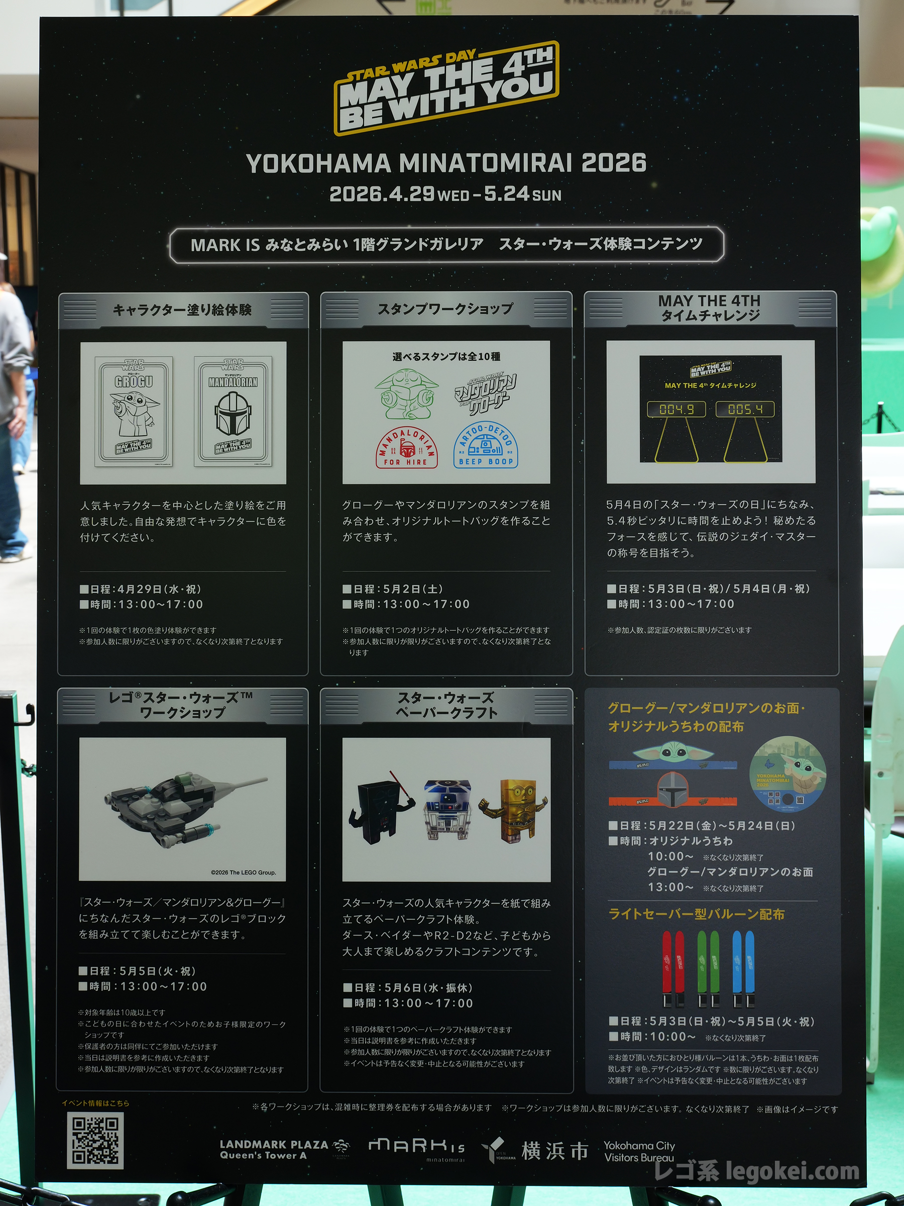 「STAR WARS DAY YOKOHAMA MINATOMIRAI 2026」の一環で、4/29(水)~5/4(月),5/6(水)に、レゴストア 横浜ランドマークプラザ店で開催中の「レゴ スター・ウォーズ N-1スターファイターをつくろう」へ伺いました。